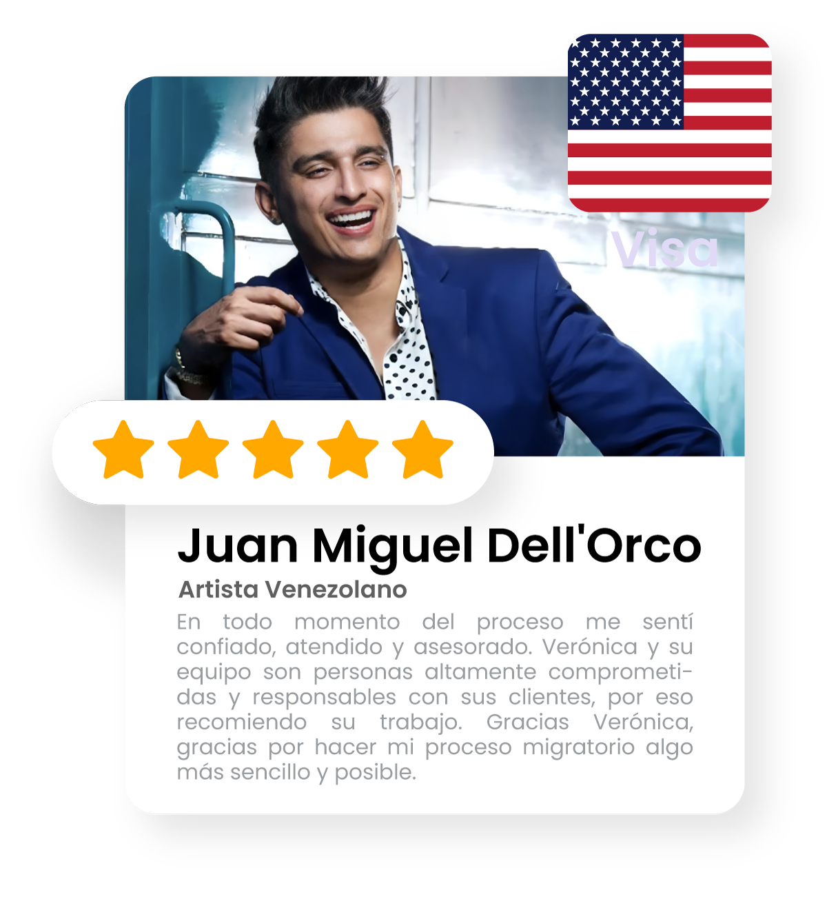 Es un servicio excepcional, recibimos acompañamiento desde el primer dia de contacto hasta el momento. ¡Agradezco mucho a Verónica! Hace exactamente 2 meses que recibimos la aprobación de nuestra VISA O1 de Talento y ya tenemos la